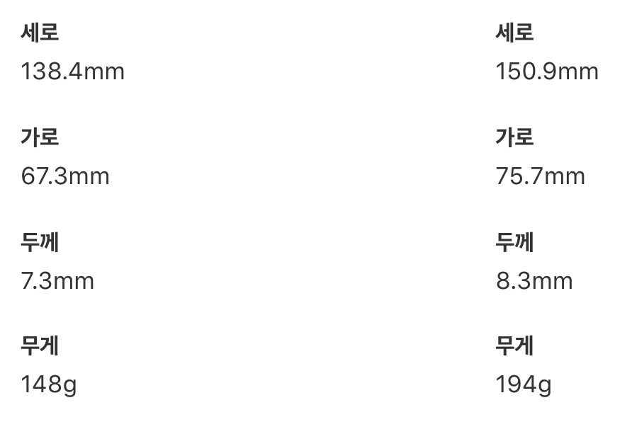 아이폰 SE 2세대가 아이폰 XR에 비해 훨씬 작고, 46g 더 가볍습니다. 매일매일 우리의 몸 처럼 가지고 다니는 스마트폰의 무게에서 46g의 차이는 결코 무시할 수 없습니다. 가벼운 스마트폰을 원한다면 아이폰 SE 2세대를, 조금 무게가 더 나가지만 화면이 큰 기기를 선호한다면 아이폰 XR을 선택하시면 됩니다.