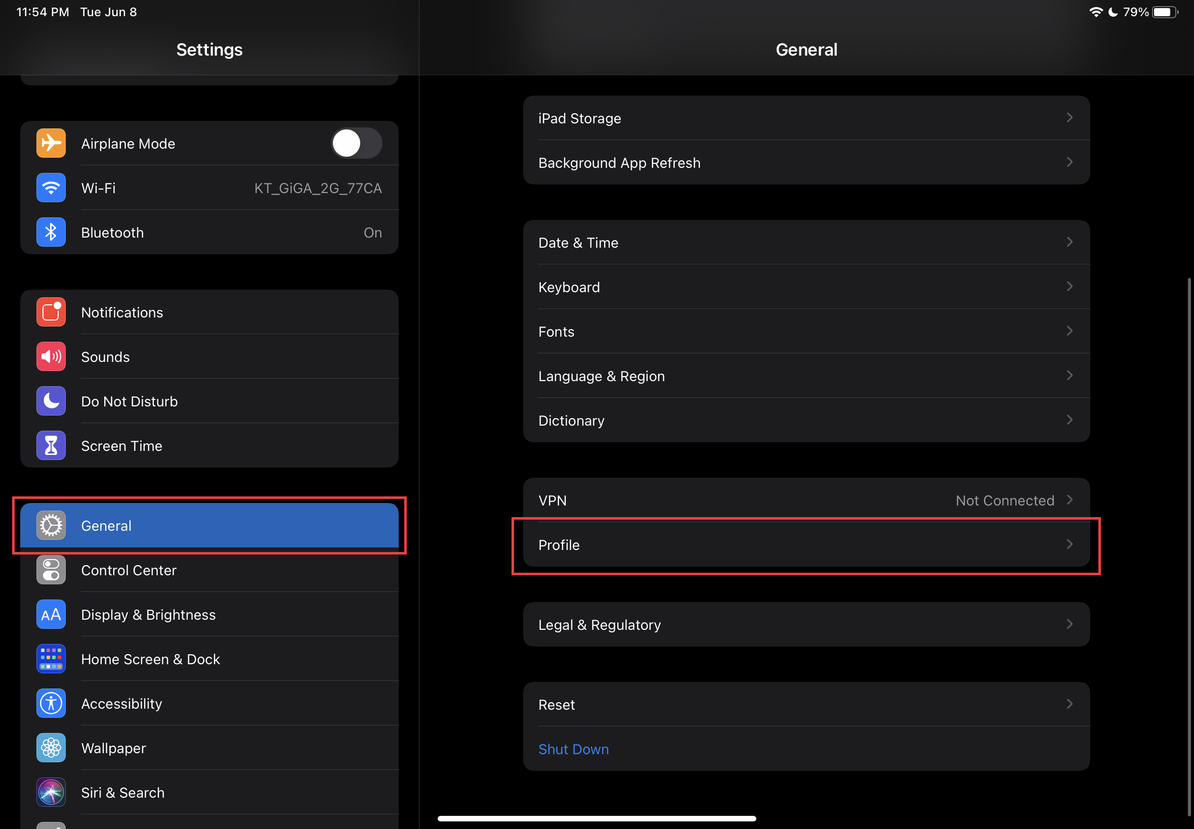 설정(Settings) 앱에서 일반(General) 메뉴에 들어가서, 프로파일(Profile) 메뉴를 클릭합니다. 그 후, 'iOS 15 & iPadOS 15 Beta Software Profile Beta Software Profile' 프로파일을 클릭합니다.