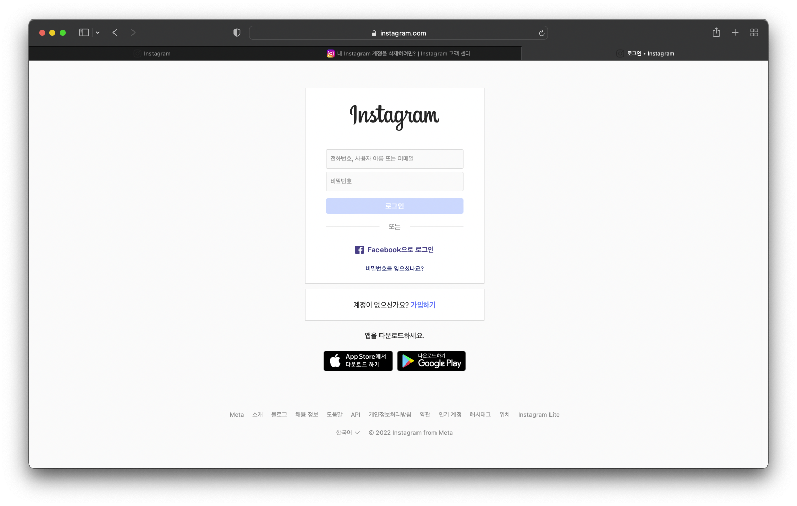 마지막으로, 삭제할 인스타 계정으로 로그인을 하게 되면 계정 삭제 진행이 완료됩니다. 삭제 완료를 하기 전, 삭제를 원하는 계정이 맞는지 다시 한 번 확인하고 삭제하는 것을 추천드립니다. 확인하지 않고 삭제하게 되면, 불상사가 일어나기 때문에 주의가 필요합니다. 감사합니다.